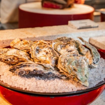 開殼生蠔,帶著海水清冽氣息。 濃郁的海中精華如鮮乳般綻放。不需過多佐料,僅簡單提味, 就能帶出那最原始、最迷人的甘甜餘韻 。不必遠赴深海,最純粹的鮮甜即在貳陸日全食晚餐盛宴。